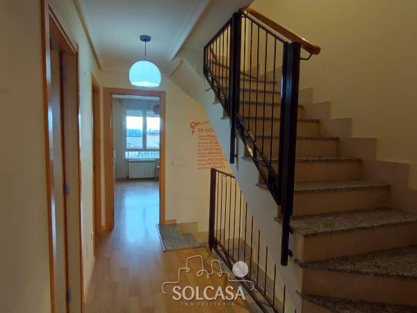 Magnífico chalet adosado en Villanubla con una superficie construída de 234m distribuidos en 4 Dormitorios (1 en planta baja), amplio salón, cocina amueblada con electrodomésticos, 2 baños y 1 aseo, buhardilla acondicionada, garaje cerrado para 2 coches y bodega. terraza y amplio jardin de 70m aproximadamente. Dispone de calefacción individual de gas natural, suelos de gress y parquet y ventanas climalit. La vivienda ha sido construída en 2007.