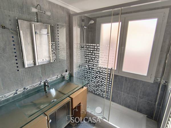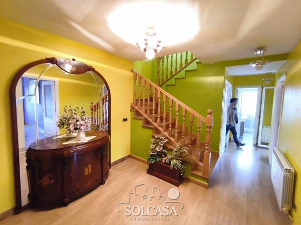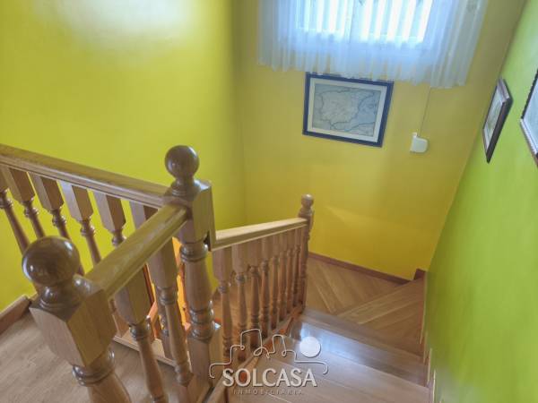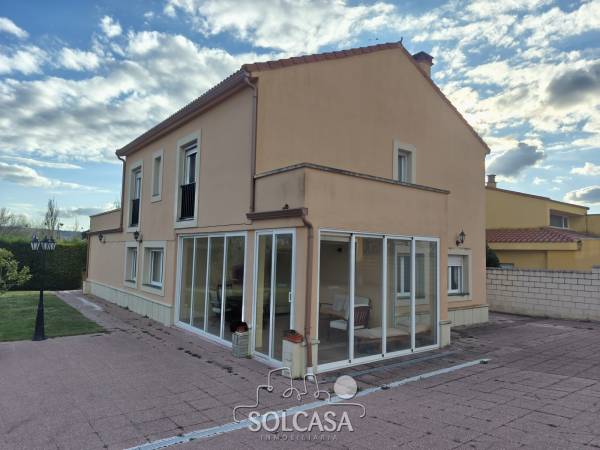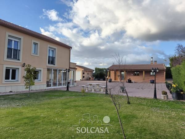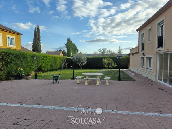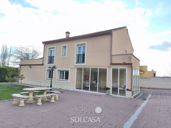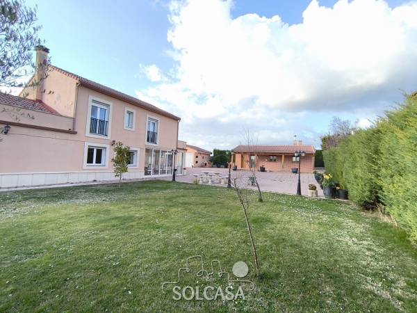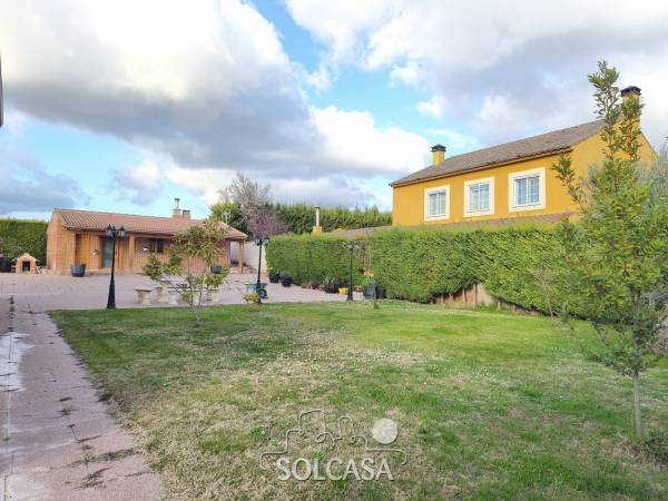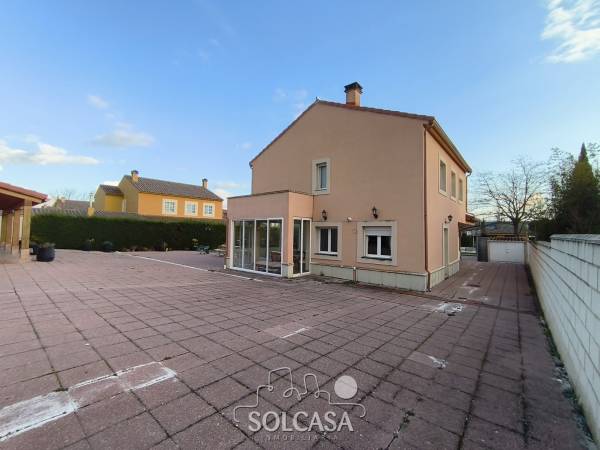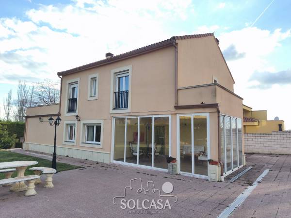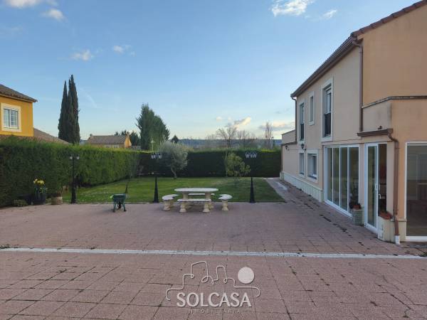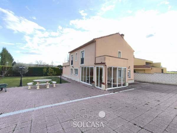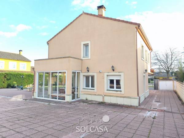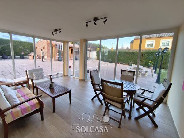 Magnífico chalet independiente en la Urbanización "El Cotanillo" en Renedo de Esgueva. El chalet tiene una superficie total construída de 279m y una superfice útil de 252m entre la vivienda, merendero y garaje. La vivienda de 214m construídos se distribuye en 5 dormitorios (uno de ellos en planta baja), 3 baños y amplo porche cerrado con acristalamiento. Tiene un amplio salón de 36m y cocina equipada con electrodomésiticos y una despensa. El merendero esta totalmente equipado con horno de Pereruela, chimenea, cocina y baño, y el del garaje para 2 coches con puertas independientes automáticas. Calefaccion individual de gas propano con deposito comunitario. La parcela tiene una superficie de 1080m. Suelos de parquet, ventanas climalit. mosquiteras, todo reformado. Zonas comunes con piscina, zona deportiva e infantil. La urbanizacion dispone de conserje y personal de mantenimiento. |